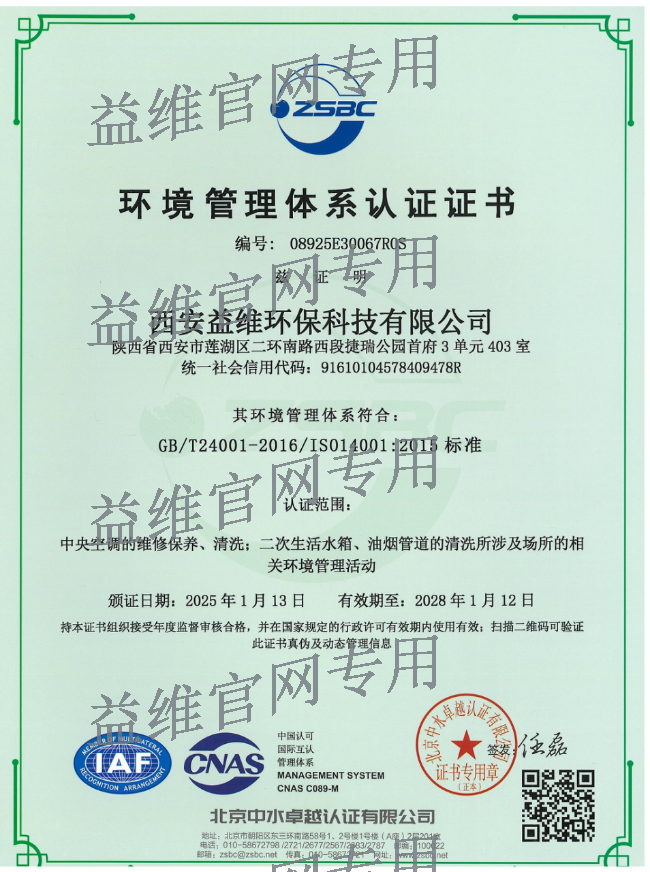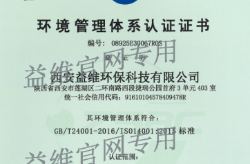 環(huán)境管理體系認證證書