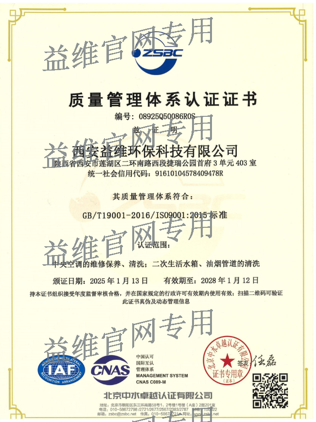 質(zhì)量管理體系認證證書